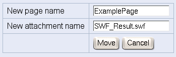 Тепер можна або просто перейменувати файл (він залишається вкладеним у цю сторінку) або перемістити файл на іншу сторінку (та потім перейменувати його, за потреби). Вам потрібно право "write" на цільовій сторінці (також цільова сторінка вже має існувати).